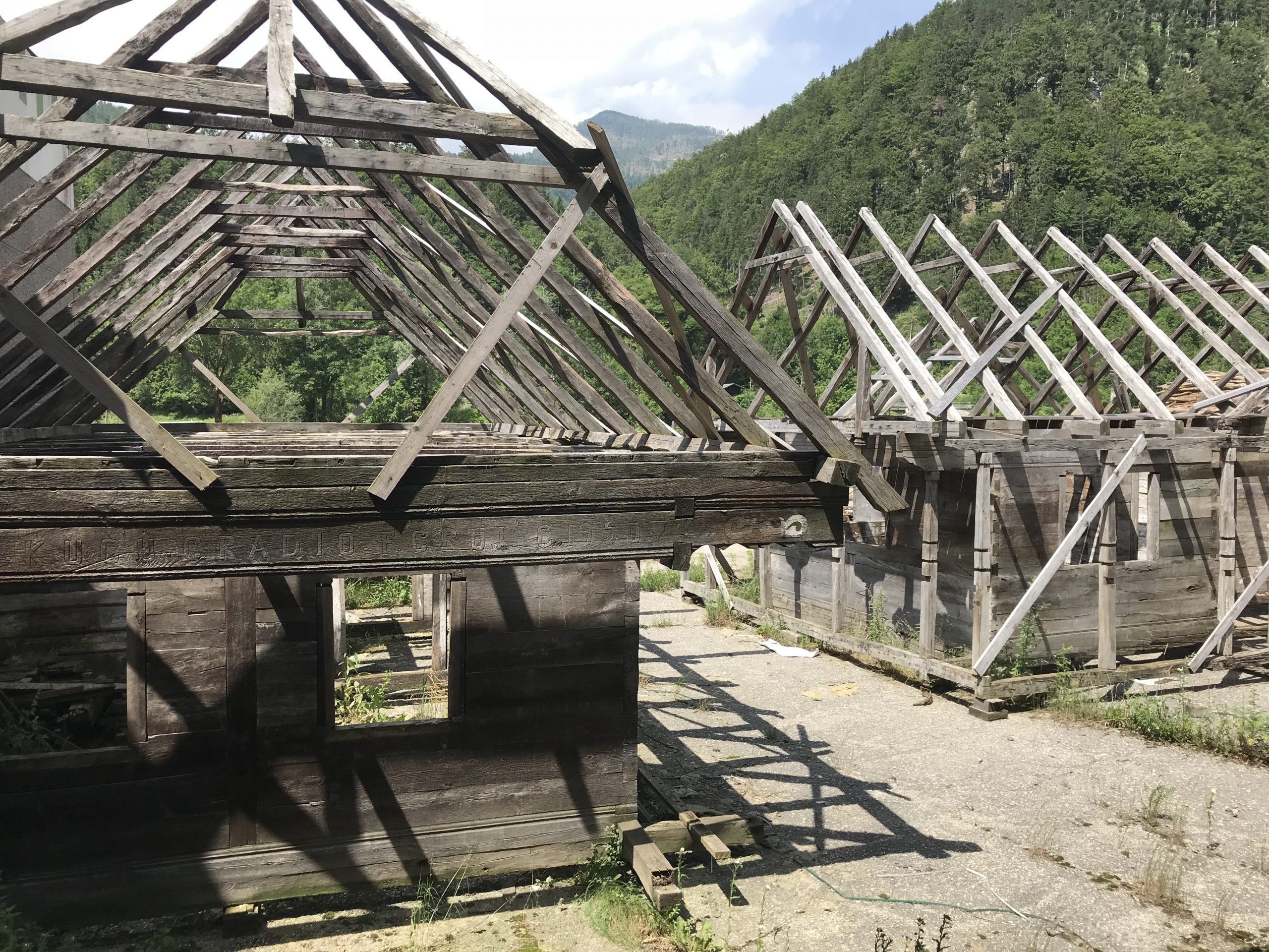 Beim Rückbau historischer Gebäude werden Eichenbohlen aus dem Fachwerk geborgen und nachhaltig aufbereitet.