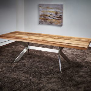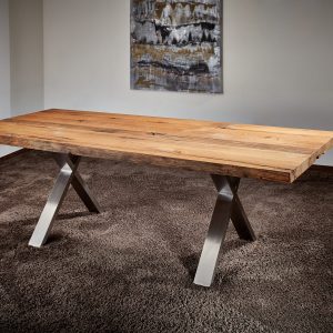 Exklusive Altholz-Esstische werden aus bis zu 200 Jahre alten Bohlen gefertigt. Hierfür muss kein Baum gefällt werden!
